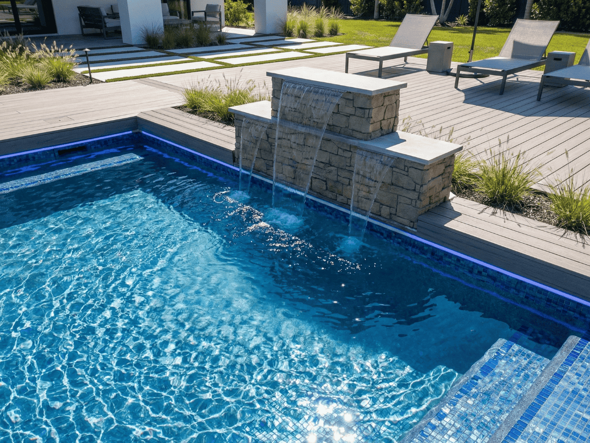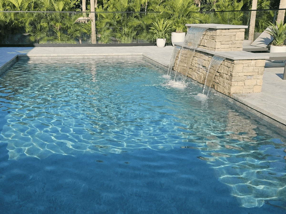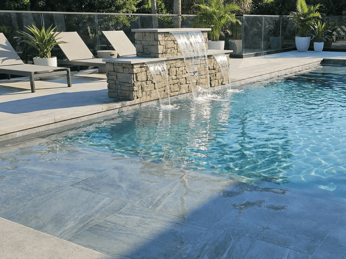 The Victoria Falls 6 modern pool waterfall is an architectural water feature designed specifically for installation along the straight edge of a swimming pool. Its dynamic form and refined profile make it an excellent choice for contemporary and luxury pool designs seeking both visual drama and elegant water movement.